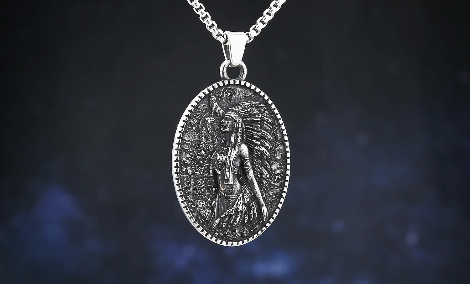 2023 New Stainless Steel Ancient Indian Tribe Round Pendant Necklace For Man Punk Jewelry Choker Unique Chain Trendy Jewelry