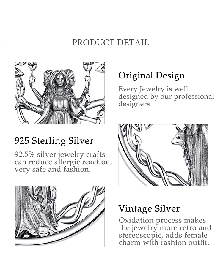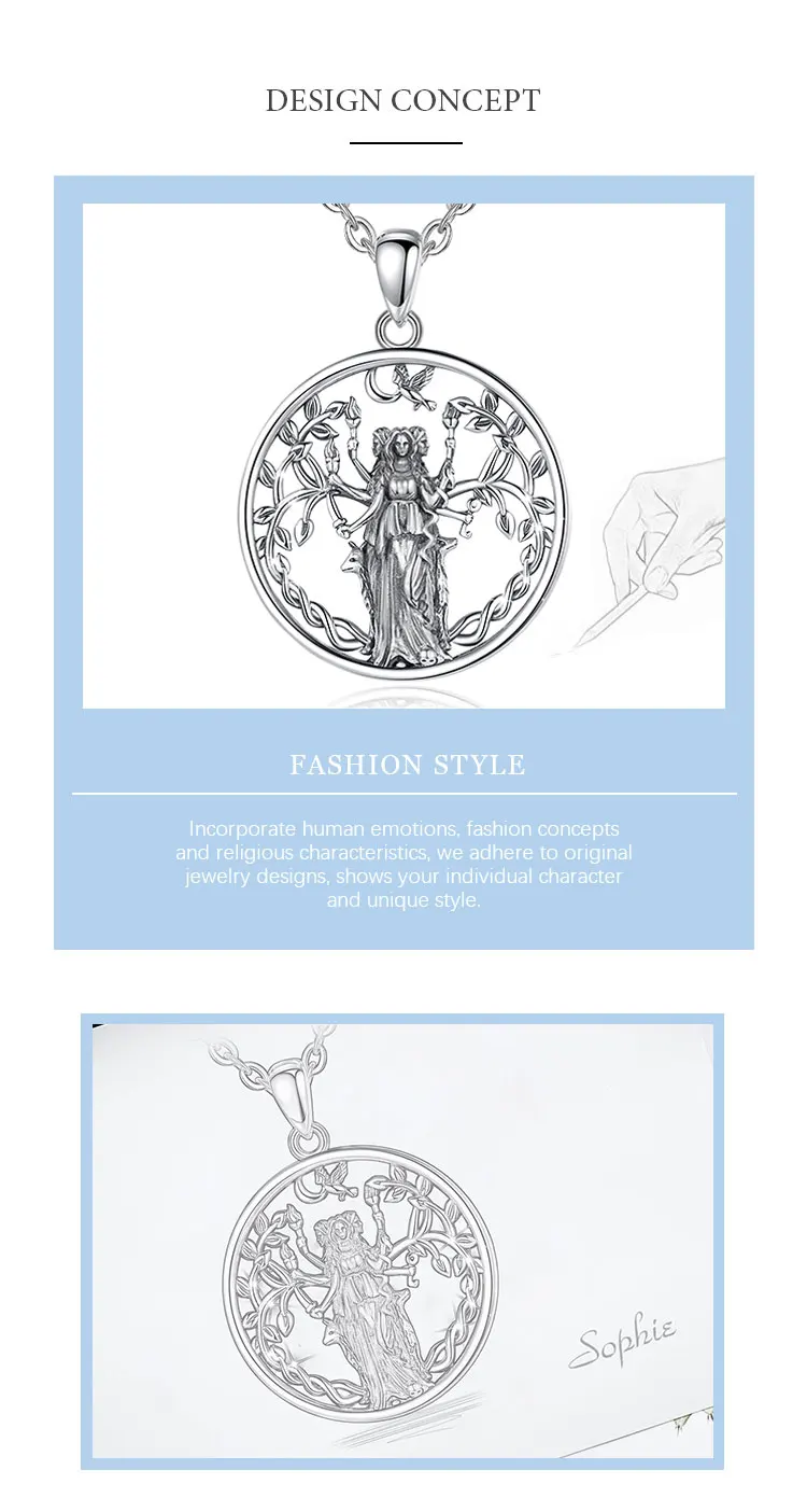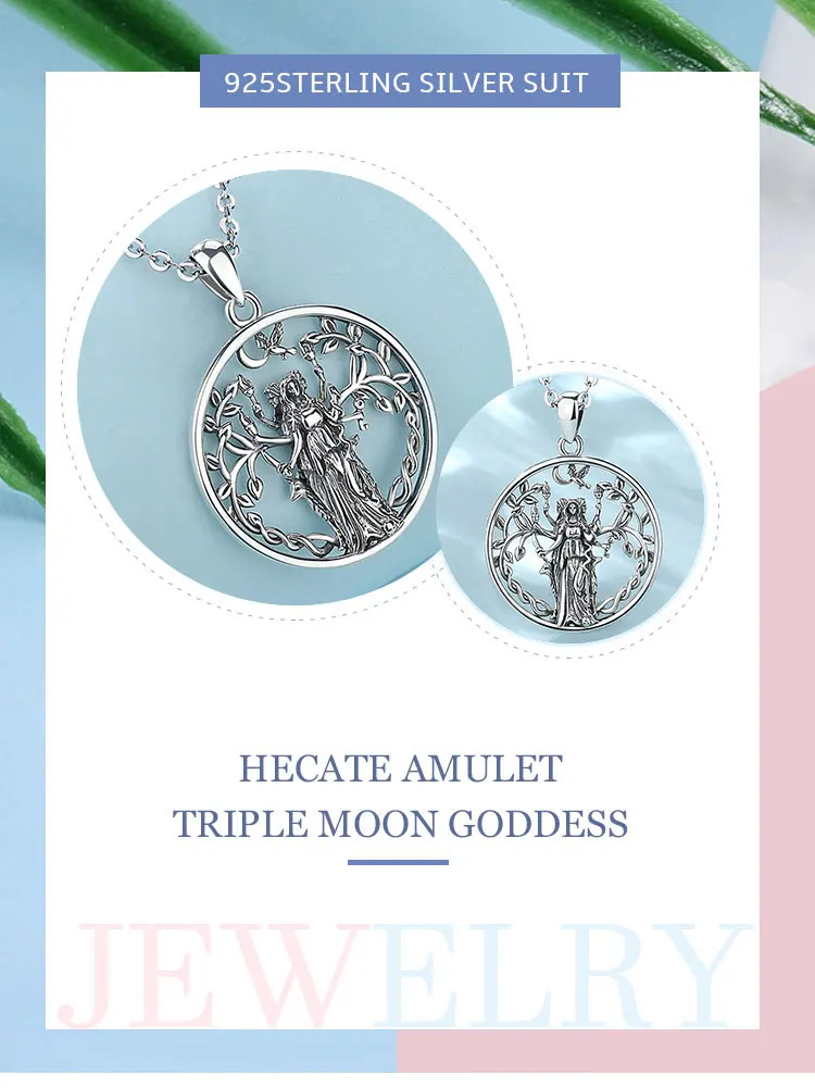 Eudora 925 Sterling Silver Triple Moon Goddess Necklace Hecate Amulet Pendant Triple Goddess Jewelry Personality Gift for Women